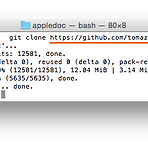 appledoc git : https://github.com/tomaz/appledoc 설치 순서.1. 터미널 실행. 명령어 : git clone https://github.com/tomaz/appledoc.git 2. appledoc 폴더안에 있는 "install-appledoc.sh" 실행. 명령어 : sudo sh install-appledoc.shsudo sh install-appledoc.sh -b /usr/bin -t ~/Library/Application\ Support/appledoc 3. 도큐먼트를 생성할 프로젝트 폴더에 셋팅 된 AppledocSettings.plist 파일을 넣어두고 실행할 경우 해당 plist속성 대로 파일이 만들어져야 하지만 명령어를 잘못 입력해서인지 파일 생성이 ..